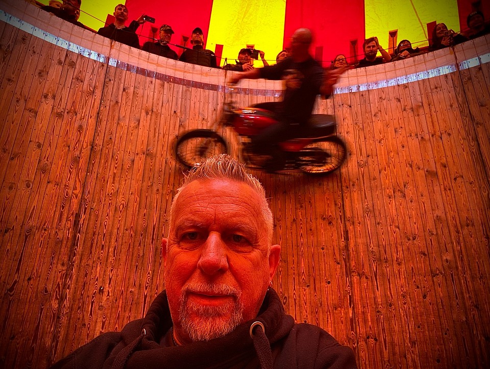 Working on the Ken Fox Hellriders wall of death Indian wheels